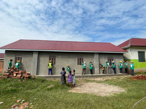 In addition, The Sentema Quran Primary School is located adjacent to the water borehole site. The school has 550 pupils across 4 existing schoolhouses. They were desperate for more space! A fifth schoolhouse providing 120m2 was half constructed but without funding for completion. With the Clean Planet Foundation’s contribution, a local contractor completed the walls, roof, and flooring and installed windows and doors. The group of volunteers worked to complete the interior and exterior plastering and painting of the building.